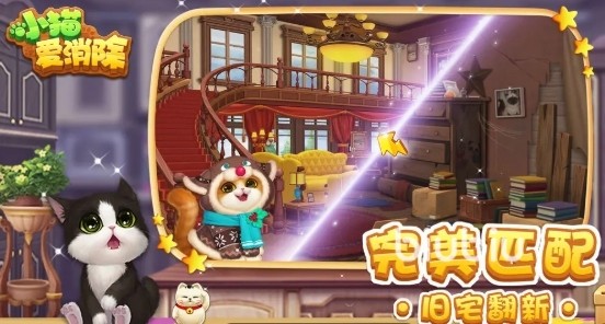 在这里小伙伴们会捡到一只被丢的小猫,然后为了给它提供一个幸福的家园,需要通过一次次去闯消除关卡获取一些建设的物资,随着关卡的深入,大家可以得到的东西会越来越丰富,越来越豪华。
