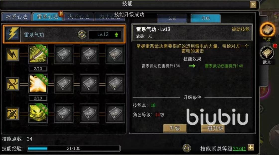 目前游戏中的武器主要包括长剑、长枪、小刀、大刀、长弓这5种。长剑一般是近战法师的武器,具有攻守兼备特点,可以搭配盾牌使用,提高生存能力。主要包括飞天剑法等技能,能够突进连招打出近身爆发,通过雷系气功还可以远程进行雷电补刀。长枪堪称是远程魔法炮台,适合在群体场合中使用,用于快速清场。技能黑杀枪法能横扫千军,一般采用雷冰双修的加点方式,可以在爆发和控场间进行无缝切换,也可以全堆智力追求极致的魔法伤害。