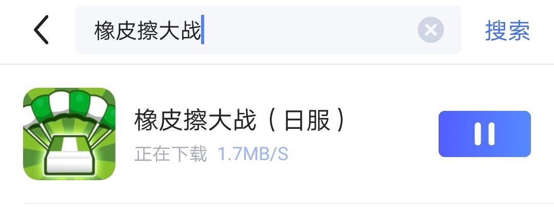 从biubiu加速器中的搜索栏输入橡皮擦大战后,点击右方的下载按钮即可,下载过程会在暂停键上显示出来。下载完毕后,便可后台自动安装,但此时要玩家根据提示进行正确的操作。