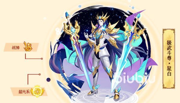 极武斗尊星白是游戏中超光系的一个战神,他左手掌握着星空,右手则掌握着北斗,一生就是为了战斗而生存,但是之所以战斗,就是为了守护,他在游戏中的强度是非常高的,极限战力直接能够达到6396。