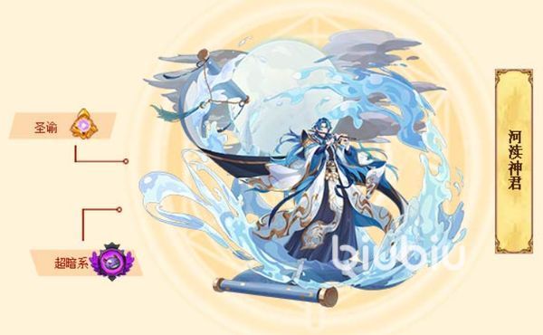 河渎神君是一个非常帅气的男角色,他是超暗系的圣谕,在外形上是一个穿着国风服装的男性,看起来非常的优雅,他的攻击为213,魔攻为327,极限战力可达到5972,强度相对来说也是比较不错的。
