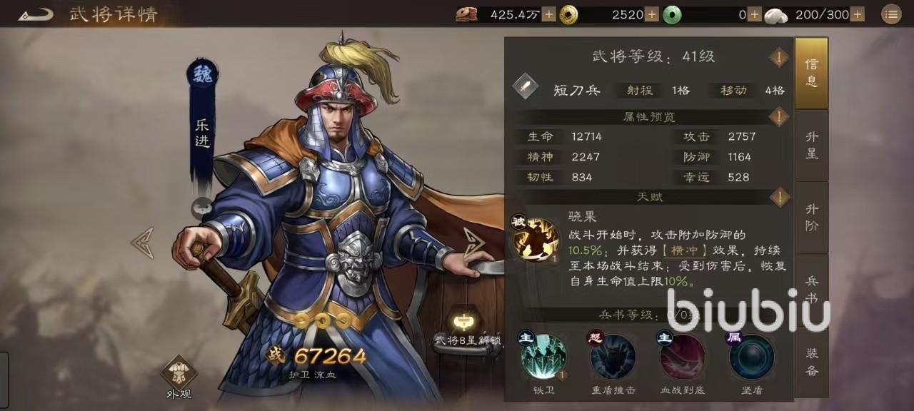 这两人一起搭配起来,先让糜竺走到前面去卖,然后乐进放技能去护卫糜竺,糜竺挨打的同时可以触发两个人的天赋,这样的搭配非常猛,几乎不会掉血。只要不是出场之后直接将二人秒掉,基本上是打不死的存在。获取难度低,前期过度非常合适,即使在后期,也是非常好的狗粮,所以不会浪费。