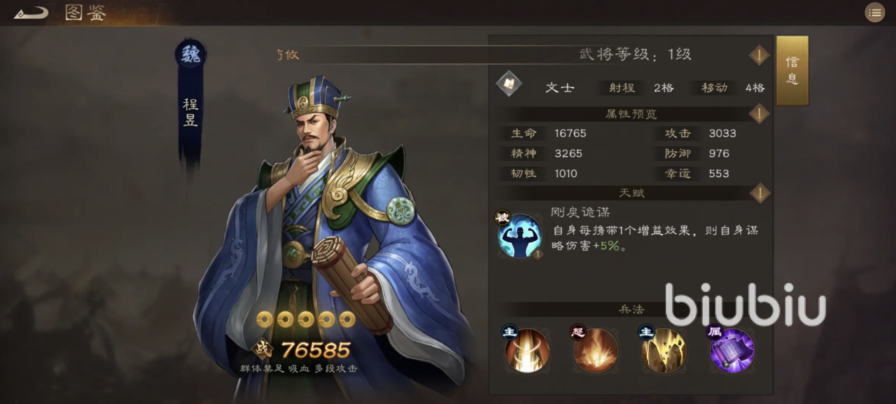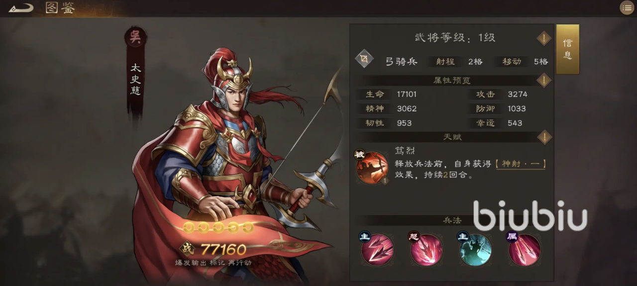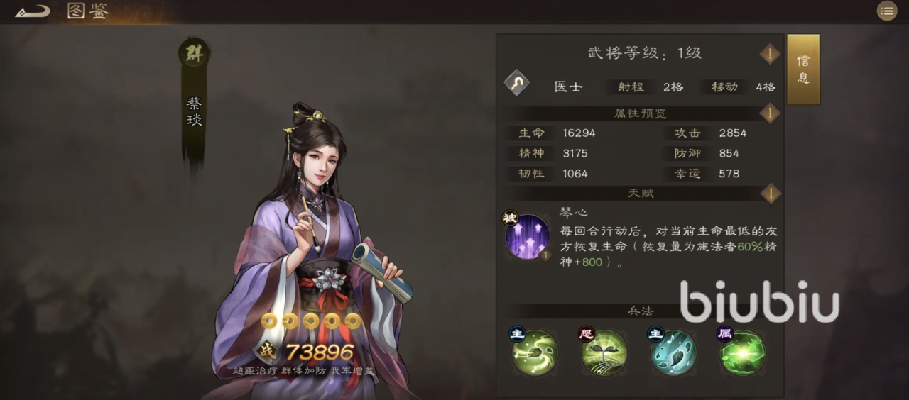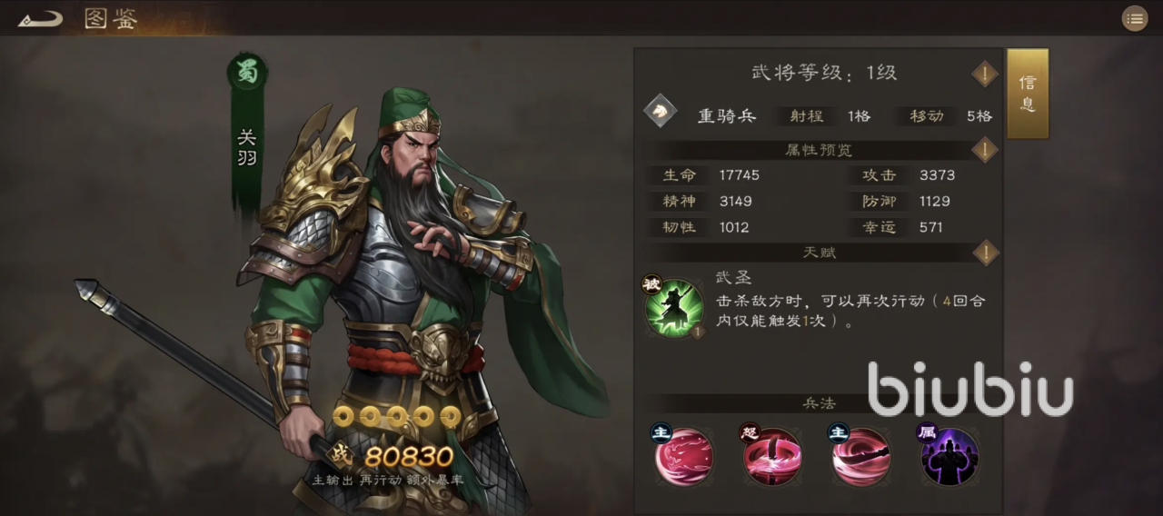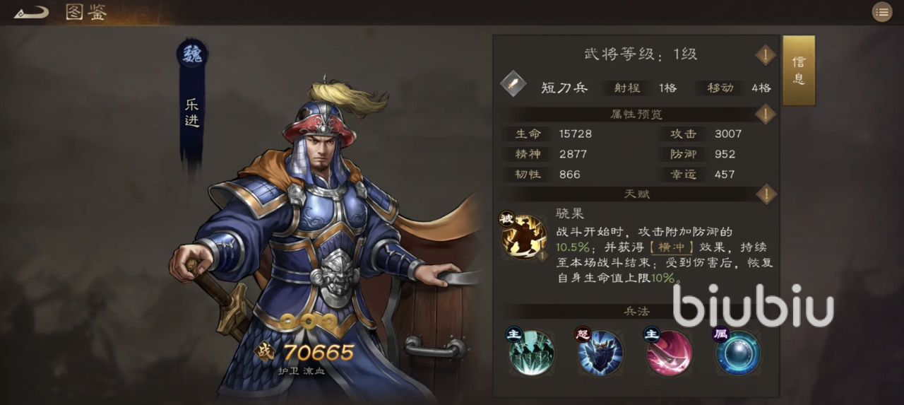 前期肉盾也很关键,推荐使用紫将乐进。虽然是紫卡,但非常耐打,挨打能回血,只要不是被秒,基本打不死,是前期最适合的“平民战神”,后期还可以把他换成输出位。