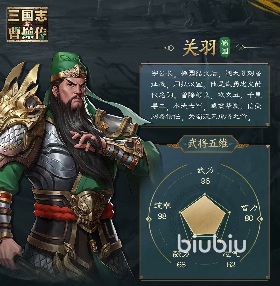 2025年06月18日 17:02 来源:蓝猫其志村团藏7对每一个喜欢三国游戏的玩家来说,关羽都是一个必须要去了解的武将,因为在任何游戏中它都是极为强势的存在,出现在新三国志曹操传中也是如此,今天小编就来详细介绍一下新三国志曹操传关羽技能怎么用。关羽是游戏中的玄甲重骑兵种,率领全副武装的骑兵,可以有效抵挡箭矢伤害,能快速冲入敌方阵中进行战斗。