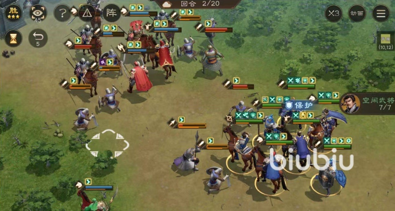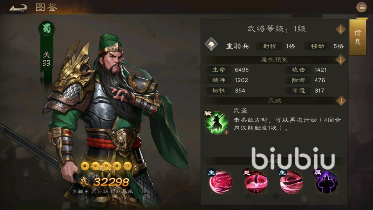 战斗开始时自身触发万人敌,持续两回合,场上每有一名敌军,张飞的兵刃伤害就能增加10%,兵刃减伤增加5%。这就意味着张飞非常适合在人数较多的战斗中使用,开场直接属性大幅度飙升,非常狂暴。主动技能是长板怒吼和万军取首。长板怒吼的伤害是直线3×3范围,所有敌方都会受到兵刃伤害,并为其施加脆弱和怯阵效果。万军取首能造成大量伤害,并按照此次伤害的百分比来恢复生命值,这样张飞就有了持续战斗的能力,所以承受伤害也不怕。