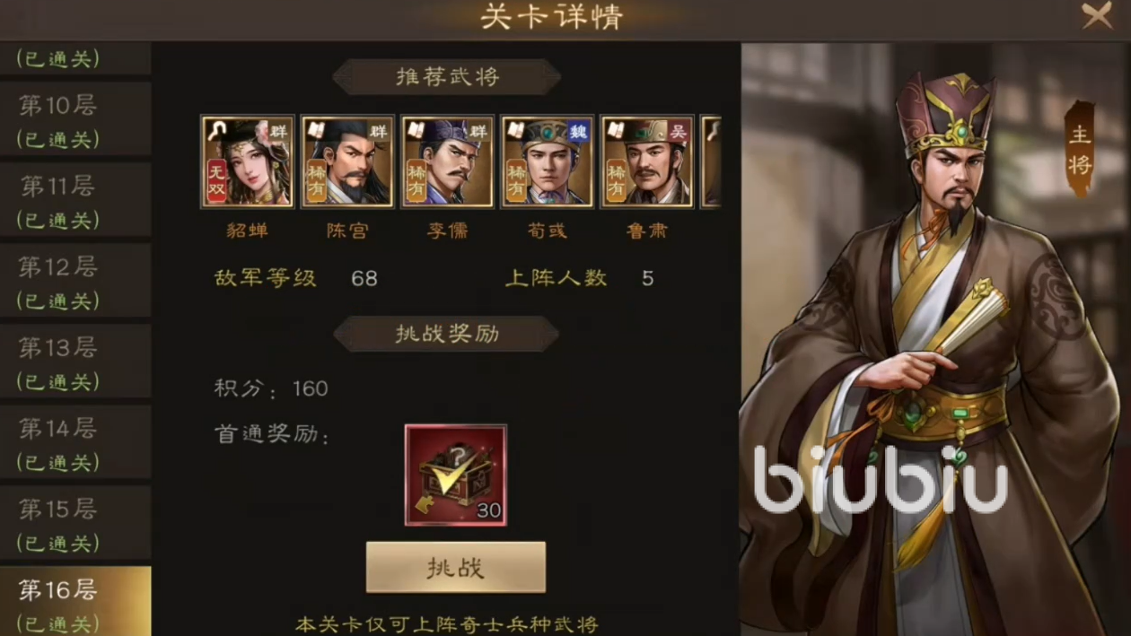之后还要准备一个输出能力特别强的英雄,这里推荐大家用吕布。他拥有超强单体爆发,可迅速击杀试炼骑士。之后可以再搭配黄忠等远程输出类的射手英雄,即可有效狙击眼前出现的其他对手,期间注意使用谋士类英雄加血,避免战斗途中不支而倒。