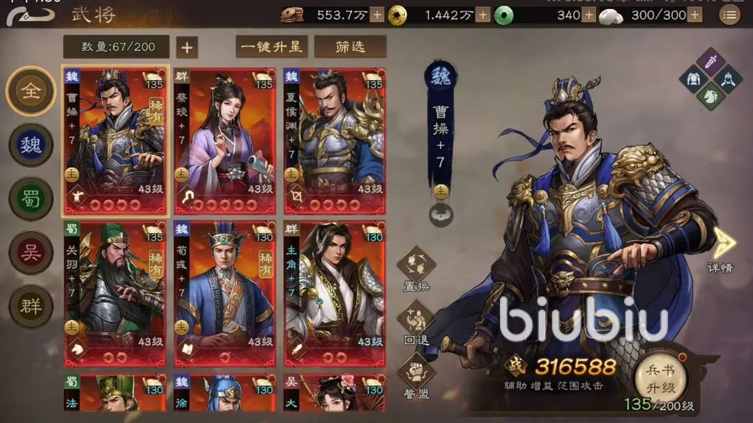 虽然说初期有什么武将都能将就用,但是如果有选择的情况下,尽量选择更为强势的培养,比较推荐黄忠作为弓兵的核心,三清场的技能非常实用,推图时也能做到快速的清杂,PVP对战中的优势比较明显;夏侯渊作为输出骑兵实力也非常强大,并且他们的升星能通过免费的途径进行,就能快速提升这些武将的实力。