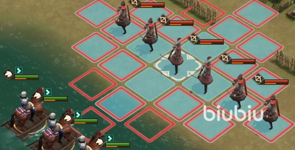 这个是属于地形试炼之一,也是很多玩家认为最难对付的一个试炼。这个试炼需要玩家们在30个回合内完成这个试炼。这个试炼我们是属于4打6,咱们本身的兵种是骑兵,但是出生的地方是河里。在河岸上站着6个弓箭手在对付我们。这一关玩家们本身在数量上不占优,同时在兵种上还被克制。这一个咱们得优势是拥有一个特殊的BUFF,移动力可以额外加3。这样我们在水中可以走4格,但是岸上的长弓却只能走两格。这个移动上的差距是玩家们能够在这个关卡获胜的关键因素。