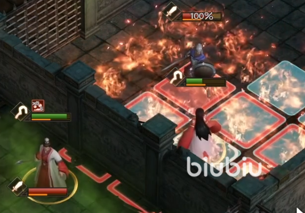首先一上来我们先需要操纵医生给自己上一个加工的BUFF,这样他的治疗量的才够保证舞娘本身可以在2回合之内能够存活下来。接下来来到第二回合,我们让医生往右边走一格,然后给自己进行解毒。然后舞娘那边需要走出到敌人的攻击范围之外,因为一旦被敌人攻击一下的话外加火烧的话是根本扛不住的。在第三回合舞娘有大招了,找到合适的位置直接开大招,这样双方都可以获取生命回复。之后医生先给自己治疗一下,然后下回合给舞娘治疗,之后专注解毒和治疗便可以顺利通过。