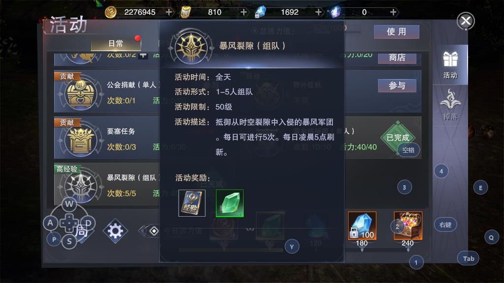 暴风裂隙:这是游戏的一个挑战玩法,在裂隙中有很多异界的敌人等待着玩家。所以在战斗难度上很高,建议玩家组队来完成。击杀副本中的小怪和BOSS可以获得大量的经验奖励,可以帮助玩家快速的提升角色等级。