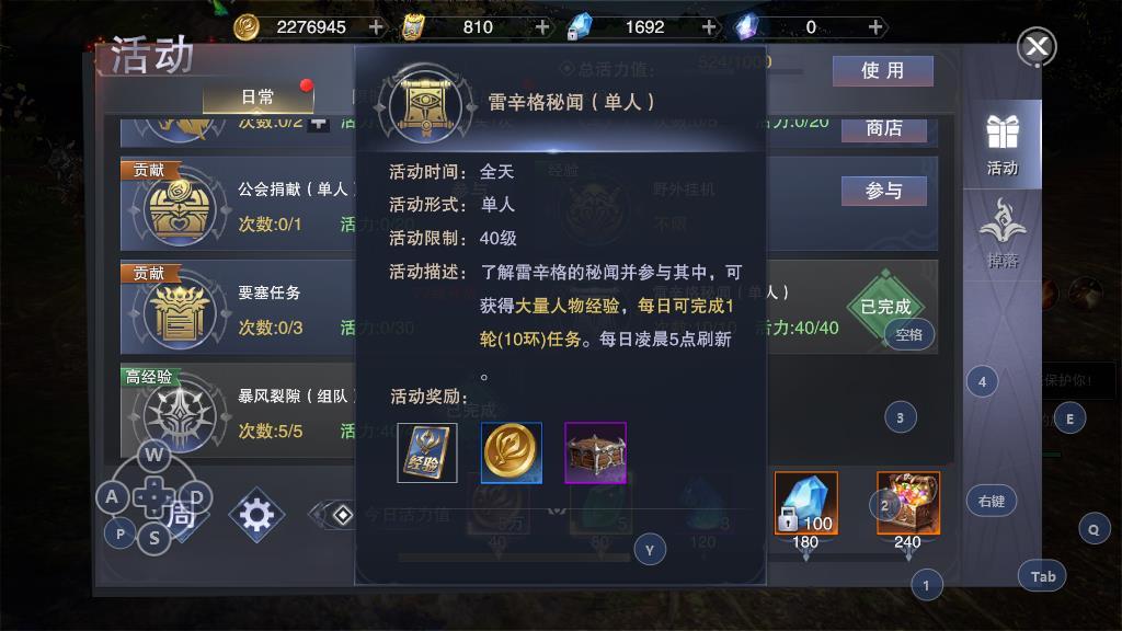 雷辛格秘闻:这是一个游戏的每日玩法,每天可以参与一次,任务有十环需要玩家来完成。每一环在完成后都可以获得独立的经验奖励,最终阶段除了经验还有宝箱可以获得。完成的方式只需要跑跑腿即可,方便快捷。