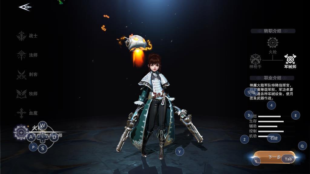 火枪:火枪是游戏中唯一一个远程物理输出职业,在输出方式上有着天生的优势,只要输出足够,怪物基本上是无法靠近火枪。转职方面分为神枪手和军械师,神枪手在攻击属性和机动能力上是非常强的,在保证输出的同时,利用优秀的人机动性可以保证自己的生存能力。而军械师的单体输出没有神枪手强大, 但是范围输出是军械师的拿手好戏,在多种的副本玩法中有优异的表现。