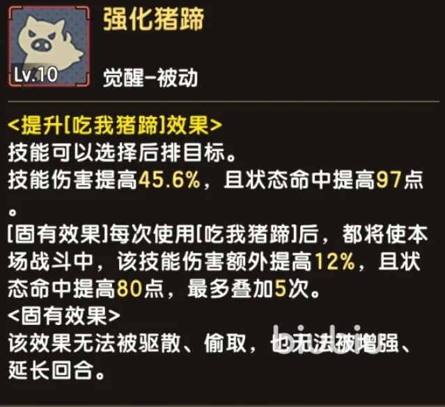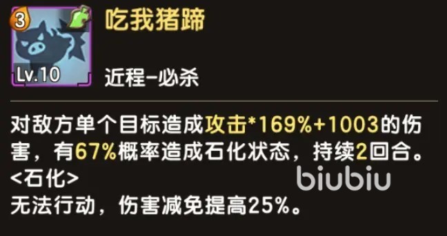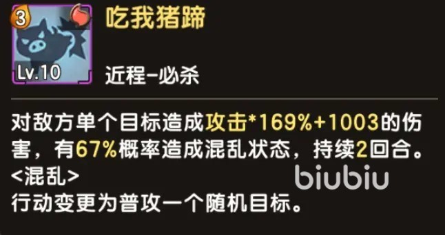 火属性的【吃我猪蹄】技能是伤害叠混乱状态,持续2个回合;