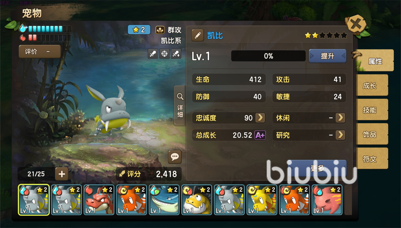 凯比宠物的技能最多可以对敌方所有目标单位进行攻击,还能带毒buff。凯比的生命值也是4个出生宠物中上限最高的,那么在站位上可以考虑让凯比的站位靠前点当肉盾。