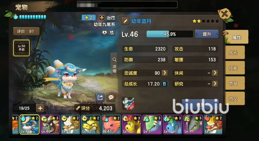 3、小九尾:这个是在初期就能有的宠物,他的主要职责就是加血。不过初期不建议耗费过多资源,只要能过度就先用着就行。这是因为到了该游戏的中后期,它几乎就不太能用得上了。