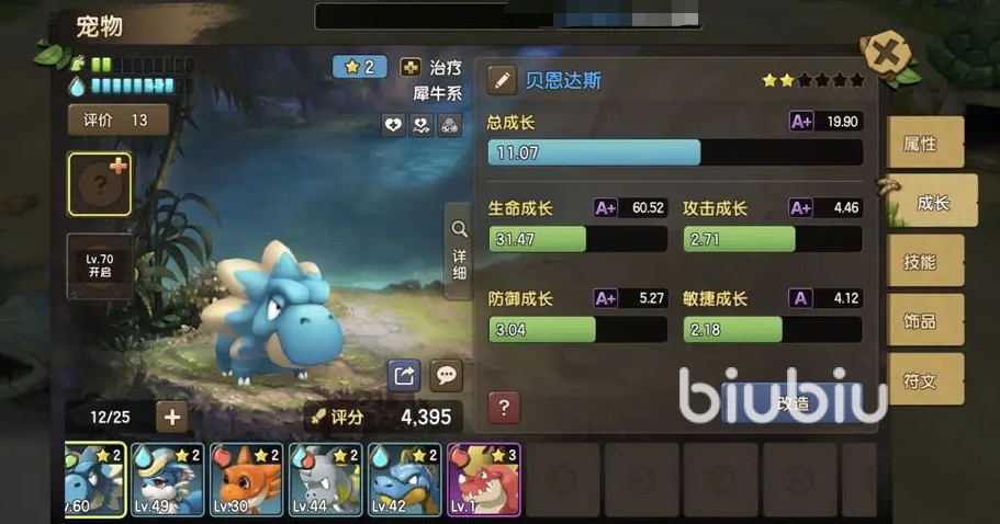 3、在有了这个宠物之后大家就可以组建自己的日常队伍了,像是螃蟹也是非常好用的,虽然削弱了一些但是依然是很强势的。上边说到和小暴龙在一起是有额外加成的,因此不要忘记培养哦。