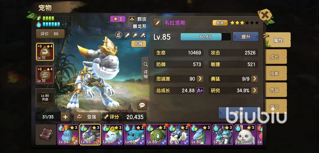 1、幼年暴龙系:通过寻找宠物蛋的繁琐就可以把它给做出来,在做出来之后只要是是蓝色的,那么就可以培养了。这个在前中期是非常好用的,无论是0氪、月卡党、微氪党最好都要去养一只。