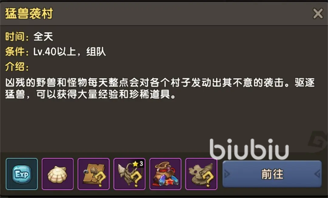 1、该玩法难度属于中等水平,开启等级的限制条件为40级。进入该玩法的方法为,点击活动,菜单栏选择组队找到“怪物袭村”即可进入。