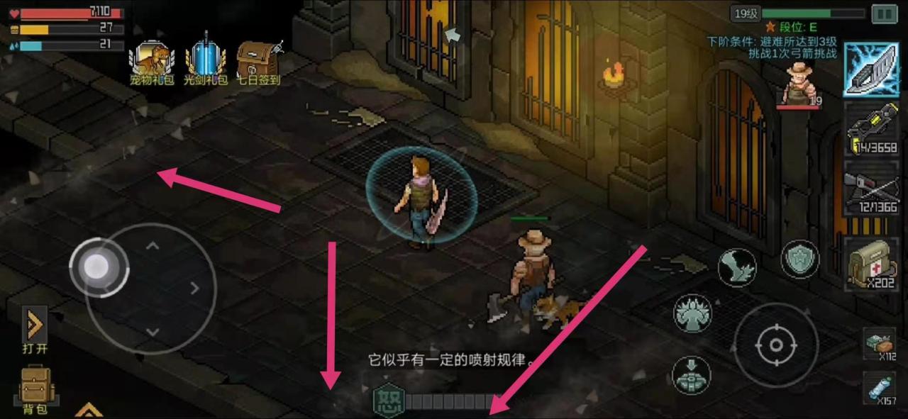 走到有地刺机关的地方,地势就变得很复杂。想要探索,或者想要更多物资的小伙伴可以先不按照箭头的指示走动,先按照自己的心意探索地图;想要快速通关的小伙伴可以根据箭头的指示离开。