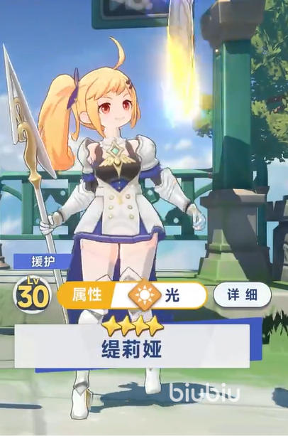 最后一个角色推荐使用缇莉娅,她的手中拿着一柄长枪。并且有着英伦贵族风格的穿着,自身也是自信满满。然后大招让人感觉安全感十足,用了可以在女主角的身边生成一个高额生命值的护盾,以此来保护自己,并且可以增加光属性以及暴击伤害。