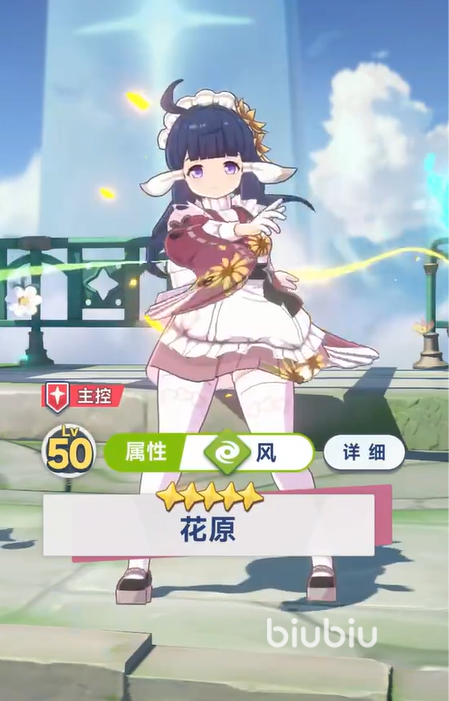 这里的主力输出角色推荐用花原,因为这是一个很强的风属性远程输出角色。它可以远程释放花朵攻击,并不断旋转,造成高额的aoe持续性伤害。让人一看上去就无法忽视,然后还能与其他风属性角色触发反应,值得培养。