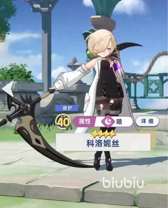 想要玩好暗队的话,先要集齐所有角色。一般来说一个队伍只能上阵三个人,第一个推荐用科洛尼斯,作为一个暗属性的援护角色,她有着一头纤长的棕色头发。并且支援能力强,可能造成大范围的镰刀伤害,并提升主角输出。
