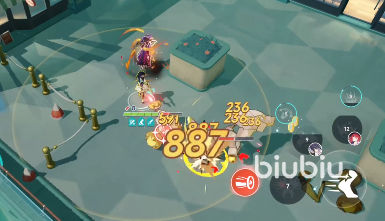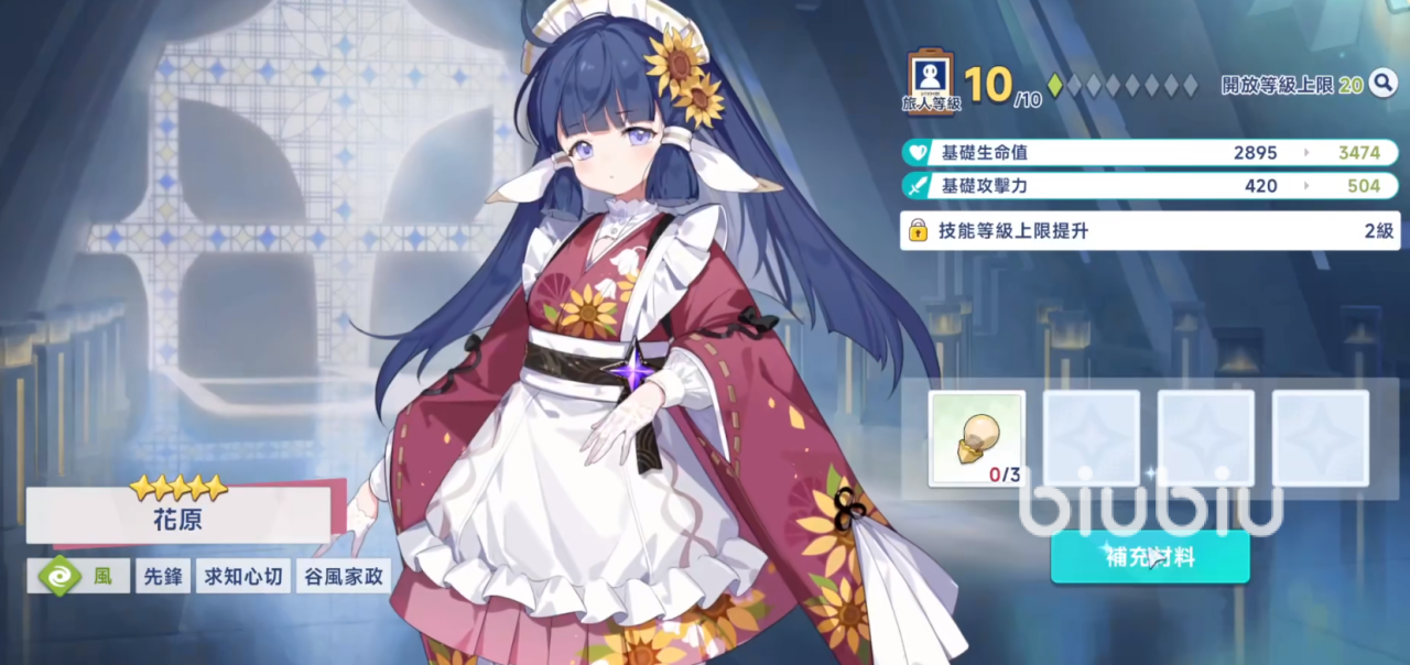 花原是常用的输出手,兼具支援队友的能力。右键冲刺、左键释放花草种子引发爆炸的操作方式,让她能轻松打出高额AOE伤害。技能升级后,飞镖数量增加,且具备强大的穿透效果。她的“花风舞”技能可投掷向日葵,造成范围风属性伤害,普攻还能强化该技能效果;大招巨型向日葵旋转攻击更是能对周围怪物造成多段打击,持续作战能力出色。