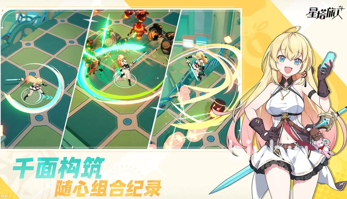 战斗玩法方面,结合自动攻击与手动闪避双操作模式,强调策略和随机性,大家需指挥角色攀登星塔,在随机生成的楼层中挑战战斗、触发事件或进行资源交易,其中主控角色负责的是移动和主要作战,搭配两名后台辅助角色释放技能支援,策略性十足。
