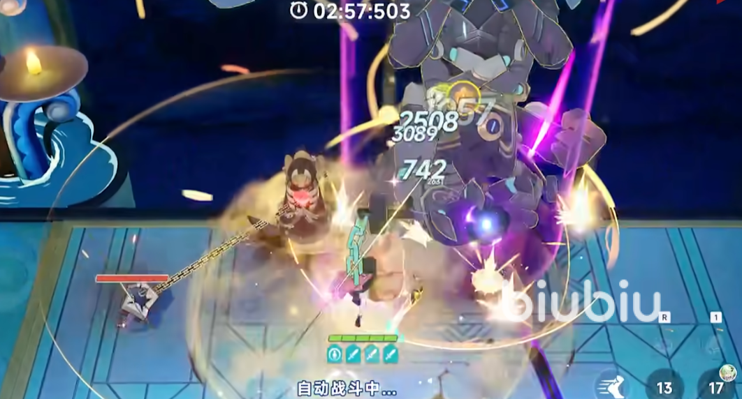 无疑是当前版本最完美的开荒阵容,也是综合强度最高的队伍之一。地元素角色数量虽然不多(目前只有3个),但三人各司其职。主控格芮是地队的灵魂角色,她拥有中距离可移动施法的普攻,输出节奏流畅且容错率极高。与传统角色不同,她的普攻伤害分配均匀,不存在打不满伤害段数的尴尬情况,这让她在BOSS战中也能保持稳定输出。她的潜能“贯穿伤痛”与“岩崩风暴”形成了完美循环,前者让她强化状态几乎无间断,后者提供高频触发印记的能力,使得她在面对高血量敌人时能持续爆发。更重要的是,格芮的普攻倍率高得惊人,其他角色还在20%上下时,她已能稳定打出60%的伤害,这让她从开荒期就能领先一整个档次。