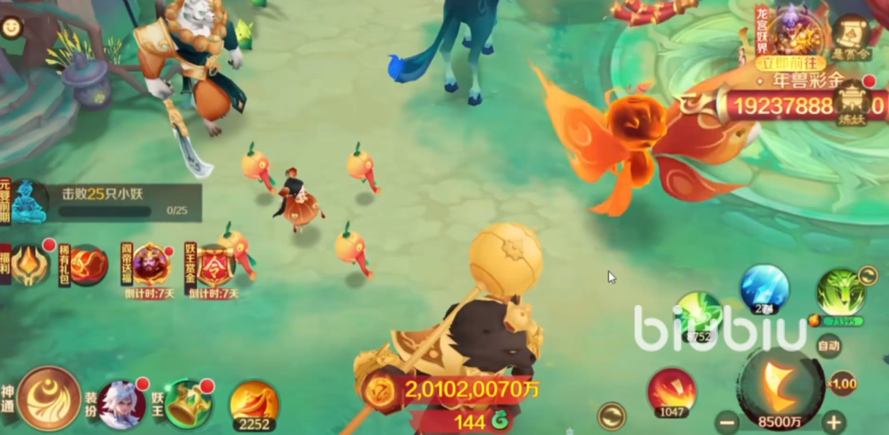 刚开始大家并不能直接挑战鬼王,需要先在规定时间内击败附近的小妖。这时更建议用群攻技能,才可以更快的消灭大量的怪物。最好还是用法师或者射手这类群伤职业去打,才能在短时间内击败boss。不过期间也要注意自己的血量,不能一味的追求速度,可以实时地加几口血!