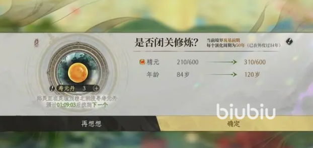 这时候就需要用到寿元丹来提升寿元的上限,寿元丹是每4小时自动恢复1个,离线的话同样计算时间,但存储的上限是10个,超过了就不会自动生成,因此一定要尽早使用避免浪费。精元同样也是有600点的上限,在演化前要及时消耗掉,不然就会资源溢出。在理解了这两种资源的用途与上限机制之后,就可以合理规划修炼的周期,确保每天可以最大限度地把寿元转化成精元,再把精元转化成灵气。