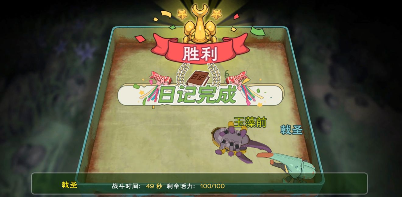 (2)进入战斗之前玩家还需要选择一只甲虫进行参战,知道甲虫的活力值为0为止就不能进行战斗了,战斗整体需要持续40秒的时间,这个时间是不可以跳过的。