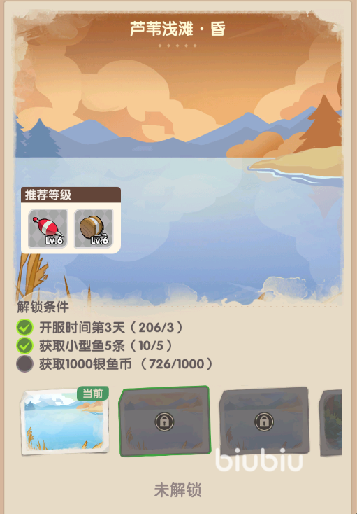 在解锁之后,在家园中就可以直接进入渔场开始钓鱼。在钓鱼的时候如果使用渔场专属鱼饵,那么钓出小鱼的概率比较大。免费提供的鱼饵便宜没好货,大概率只能钓到杂物,所以如果想要快速补充图鉴,那么一定要选择合适的鱼饵。游戏中还设置了不同的渔场,不同渔场解锁条件也有一定的区别,解锁新的渔场并且点亮图鉴,就可以领取对应的奖励。例如芦苇浅滩昏渔场,需要开服时间第三天,获取5条小型鱼,获取1000银鱼币才能够解锁。其他也都有对应的解锁条件,需要仔细去查看。要想提高钓鱼的收益,对于手中的鱼竿、鱼漂、鱼钩、鱼线等都需要进行升级,例如鱼竿等级提升之后,就可以提高钓到鱼的重量。