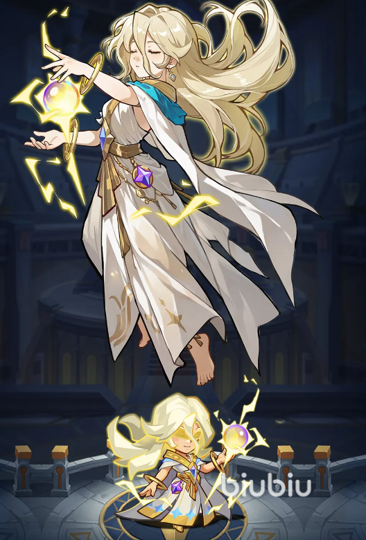 对范围内敌人造成6次雷系伤,她的“雷鸣”会在手中展开魔法阵,并睁开双眼向着注视的地方召唤引导天雷,就会对范围内所有敌人打出3次雷系伤。