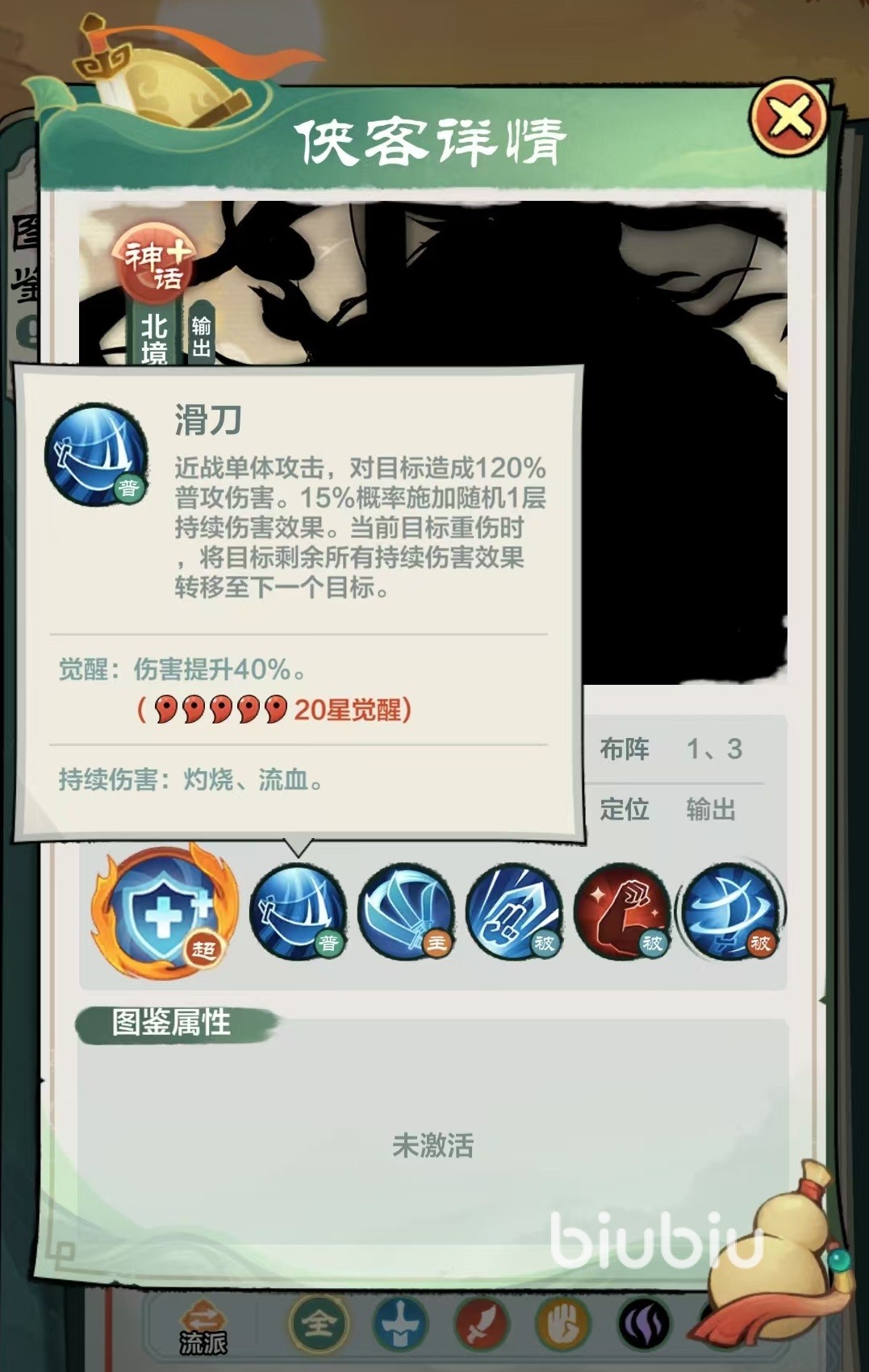 第2个被动飞击式,每6秒钟就能对当前血量最低的单位造成一次240%持续伤害,并使其受到持续伤害提升40%,持续三秒钟自身。获得本次伤害30%的护体罡气,在释放迅刀斩时,会立即触发一次飞击式。最后一个被动搬式,当己方移除敌方单位的持续伤害效果时,随机为该单位施加一层随机持续伤害效果。