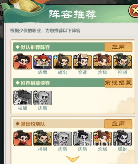 这里推荐几种阵容,第一种的话就是全刀职业玩法,如此便可全打持续性伤害。当然,也可以选择走五刀+一辅助的玩法,通过辅助持续不断地治疗并增加攻击。至于辅助的话,这里更加推荐大家选择齐盛,可以增加你的普攻伤害,并附加流血或者灼烧状态。