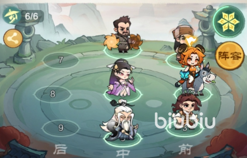 这里输出角色通常建议选普通输出占比高的,同时有一档控制的,云惊天、龙帮主就挺不错。pve随便打,pvp中靠着强控强输出称霸一方。国师也是擅长击飞,放在这里也是很不错的人选。盾类的则进一步确保拳师的生存,不管是本身坦度就很高的,还是通过加护盾提升坦度的都可以,比如说呆和尚、镇山、张三丰。辅助角色选择就比较宽泛了,对敌减益的或者提升己方生存的都行,峨眉、百灵儿、郭忠义都可以。
