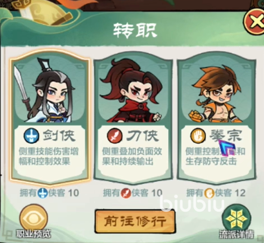 游戏之中,玩家们操作的角色在满足一定的关卡和等级需求后,便可以进行转职。转职对于玩家们来说还是非常重要的,玩家们在初期可以选择的职业一共有三个,三个职业各有其特色,玩家们可以根据自身的情况进行选择。