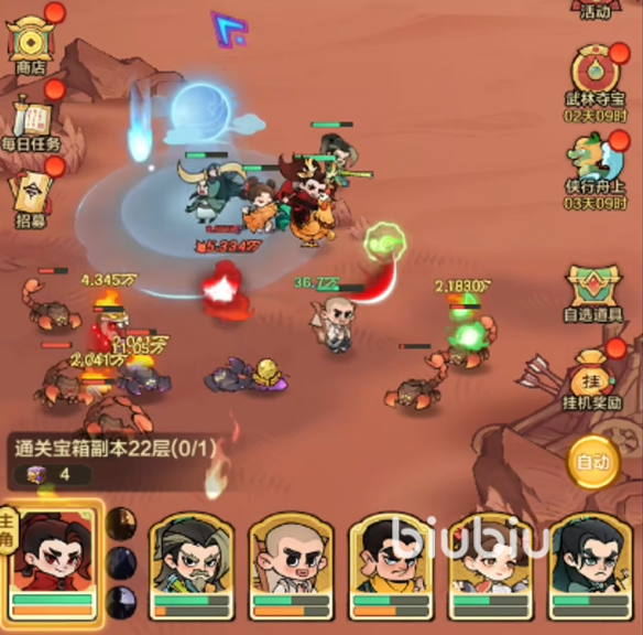 游戏一开始进入游戏的时候会有一个较短的剧情说明,大概所说的就是游戏的背景介绍。之后便会有着教学出现。玩家们可以通过教学了解到这款游戏主要的玩法和战斗。在教学结束之后可以获得一些系统所送的奖励。之后便可以正式开启游戏了。游戏一上来会赠送几个蓝色和紫色的侠客。这些侠客的能力称不上多强,但也绝对不算弱。玩家们在中期之前使用是绝对够用了。这款游戏前期的关卡难度不高,这些角色对付前期的敌人是足够了。
