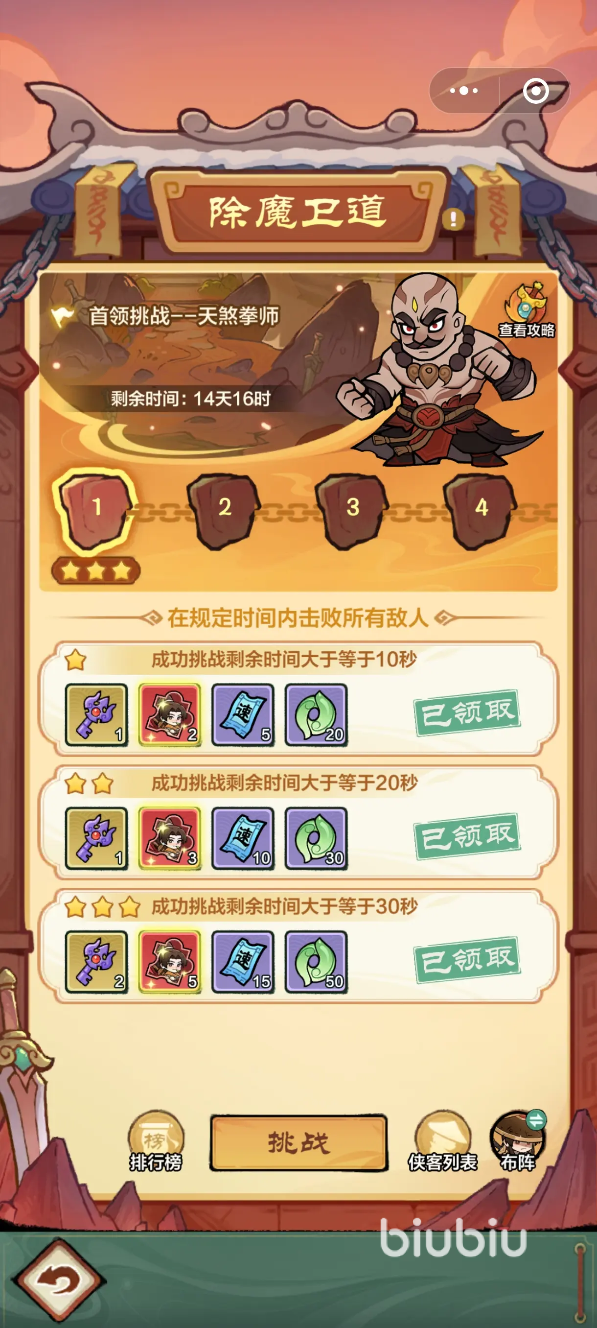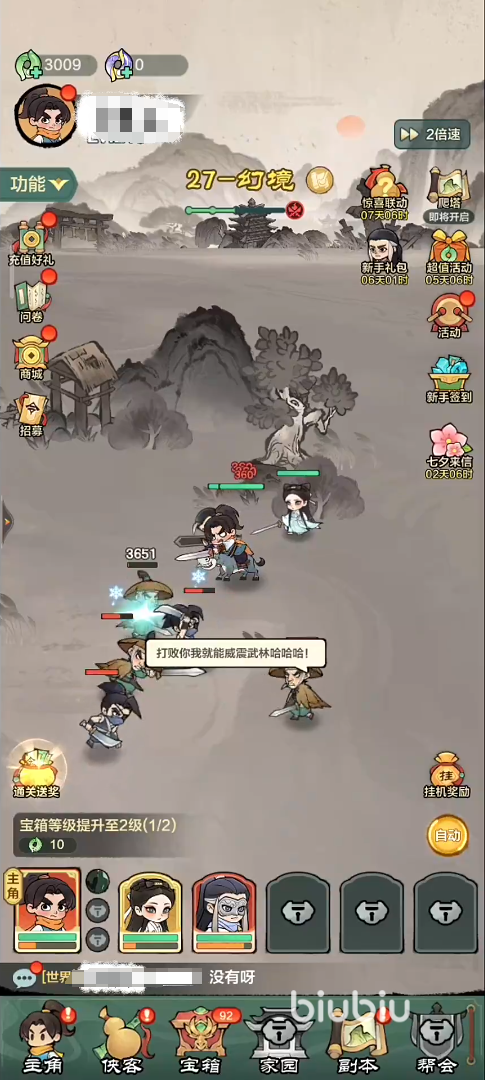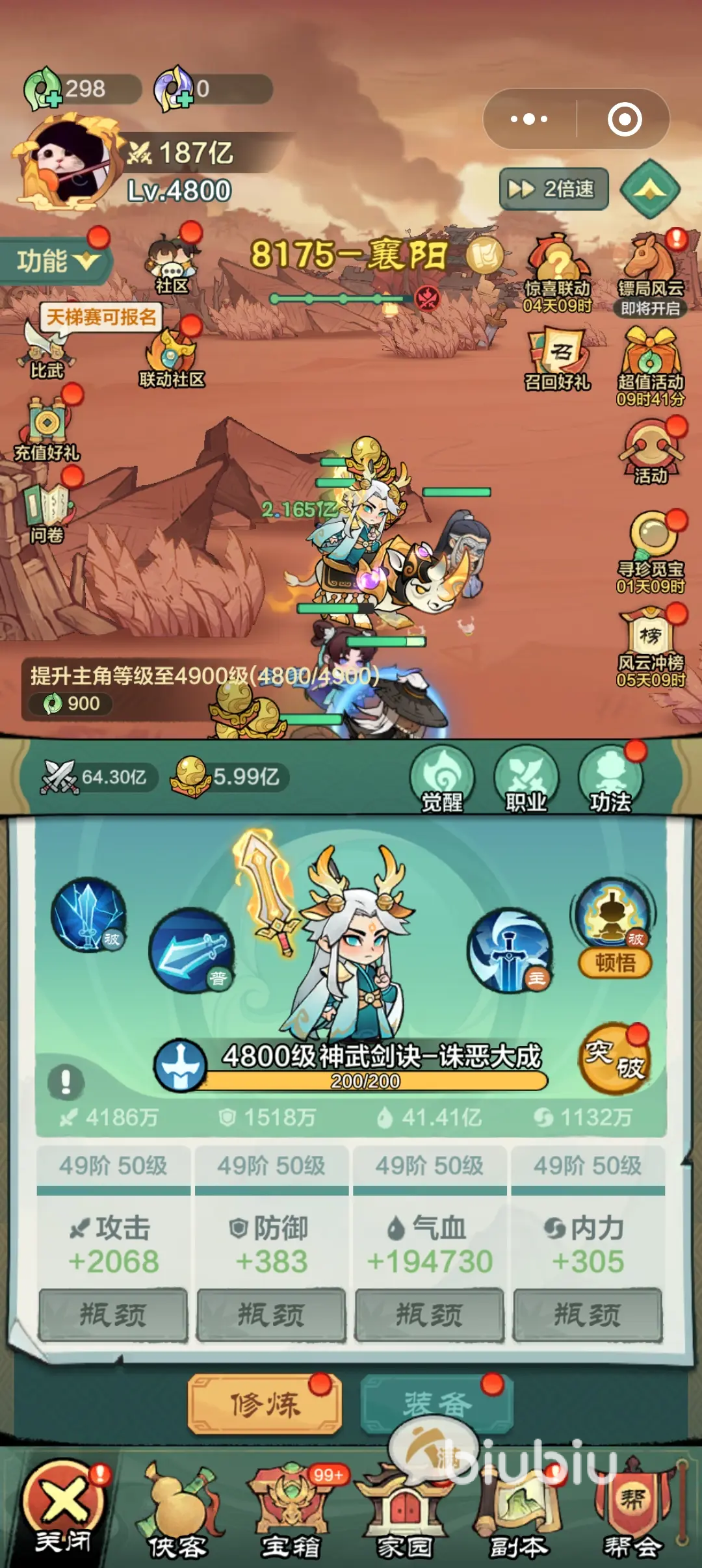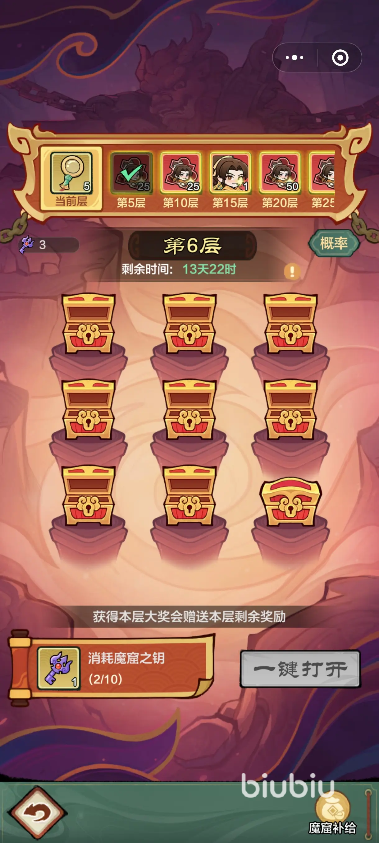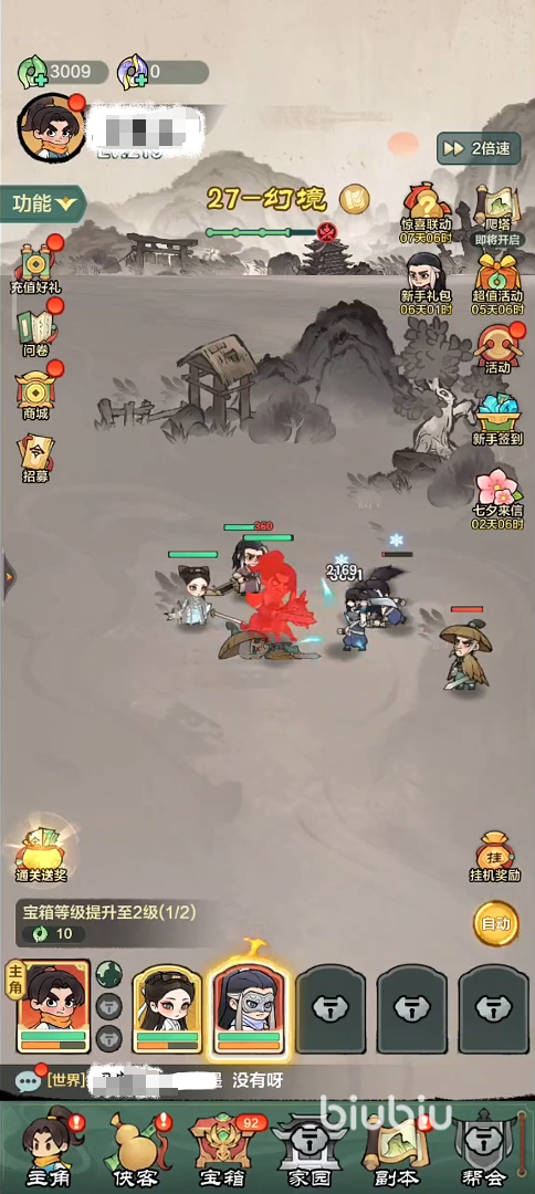 游戏里的宝箱,其实某种程度上是对应着角色的养成材料的,所以这个玩法非常重要,目前有四类分别为:金币宝箱,装备宝箱,进阶石宝箱,以及功法宝箱,将宝箱打开之后,就可以获得其中的经验,积分,或者是金币,也可能或获得额外的养成材料,或者是直接获得侠客。宝箱是可以提升收益的,等级提升之后,能够获得稀有装备的概率也会提升,同时功法品阶也得到提升,也有更大的几率去获得品质更高的侠客。