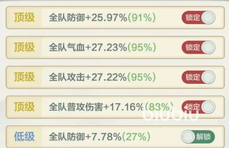 在发展前期的时候,侠客的星级基本上都在五星以下,这个时候是以推图为主的,所以推荐小伙伴们洗碎主要是提供整个队伍的输出能力以及内力方面,生存的话可以点全队气血,2~3条气血词条就可以了。