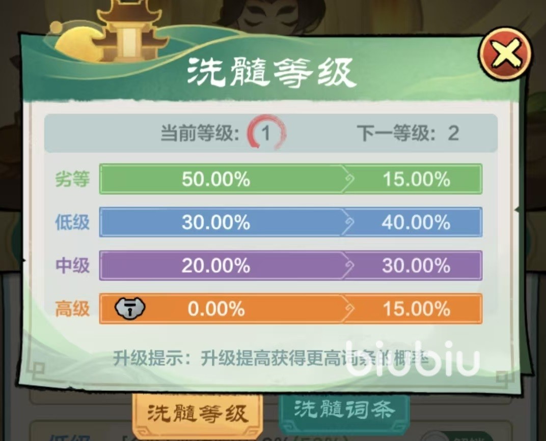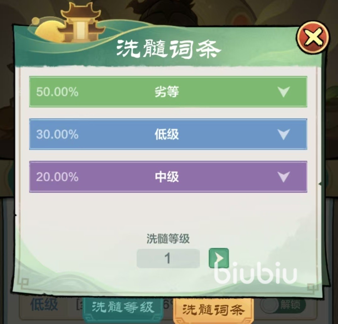 洗髓词条分为多种不同颜色,当洗髓等级1级的时候,只能出现劣等、低级和中级这三种品质的词条,洗髓等级达到2级时才会开放高级词条,等级越高,开放的词条等级也就越高。洗髓需要消耗的是药材精华,药材精华主要在大家的庄园种植中来收获,所以炼药洗髓玩法是和庄园玩法分不开的。