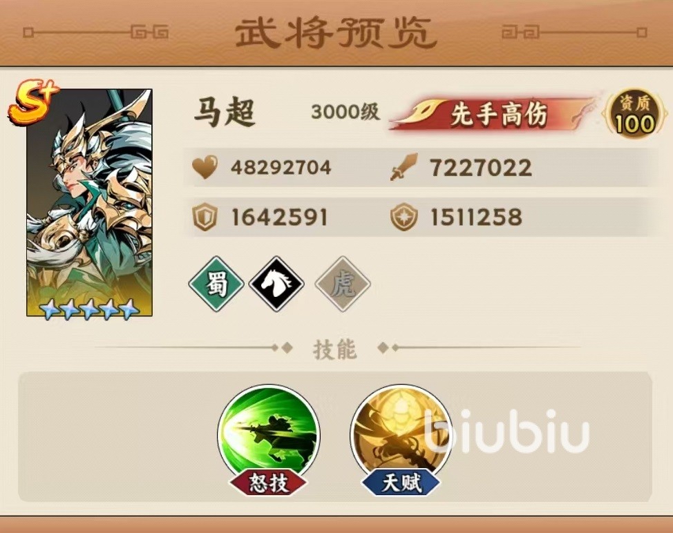 无论想要了解武将还是阵容搭配,都可以去九游查看免费攻略。九游是手游福利最好的APP,在这里节假日可进行万元无门槛券免费抽的活动,帮助0元畅玩游戏。还能享受到签到抽奖,玩游戏领工资等福利。马超在属性方面是属于资质100的S+武将,虽然没有达到110的资质,但也是核心主力之一.他擅长先手高伤害爆发,自身是属于骁骑职业,可对敌方造成物理近战伤害,同时能攻击一排的敌方武将群体,输出能力强。