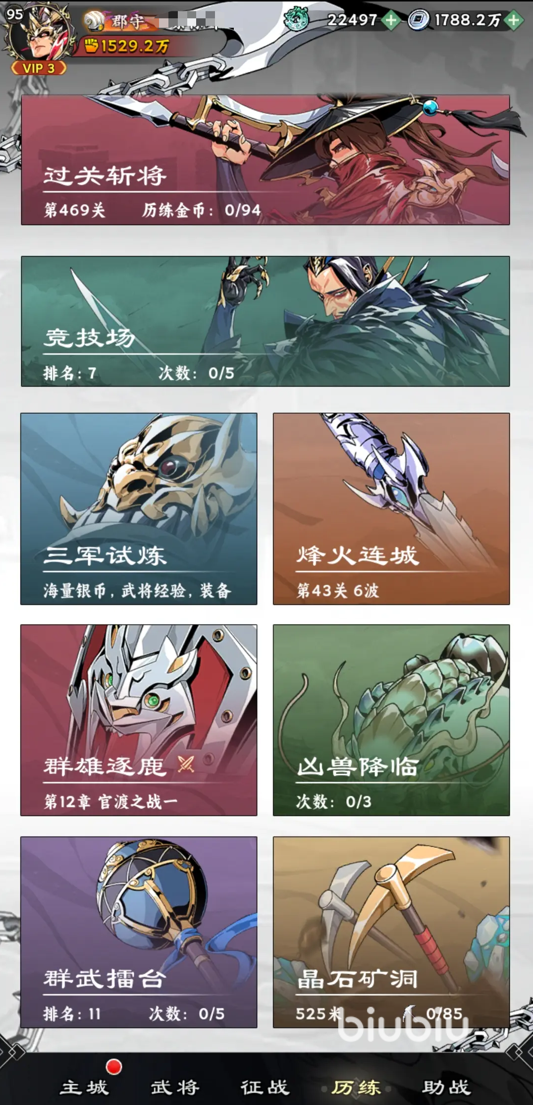 至于武将的养成材料,比如一些装备和进阶的资源类,需要小伙伴们通过打副本、公会兑换、挂机以及参与各种活动,完成任务等方式获得,所以大家完全可以平时勤玩任务,并不一定要花钱。