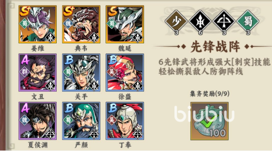 玩家在进行派别区分的时候,如果先锋武将占据多数的话,就可以顺利成行的提升其队伍的防御性作用。选择武将也是有一定说法的,可以选择新手友好型的即可!比如典韦,姜维,魏延,文丑以及关平都是可以的,这样的搭配方式就可以成功激活穿刺效果了!