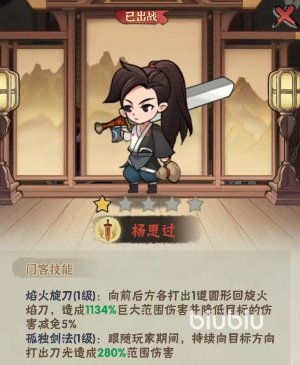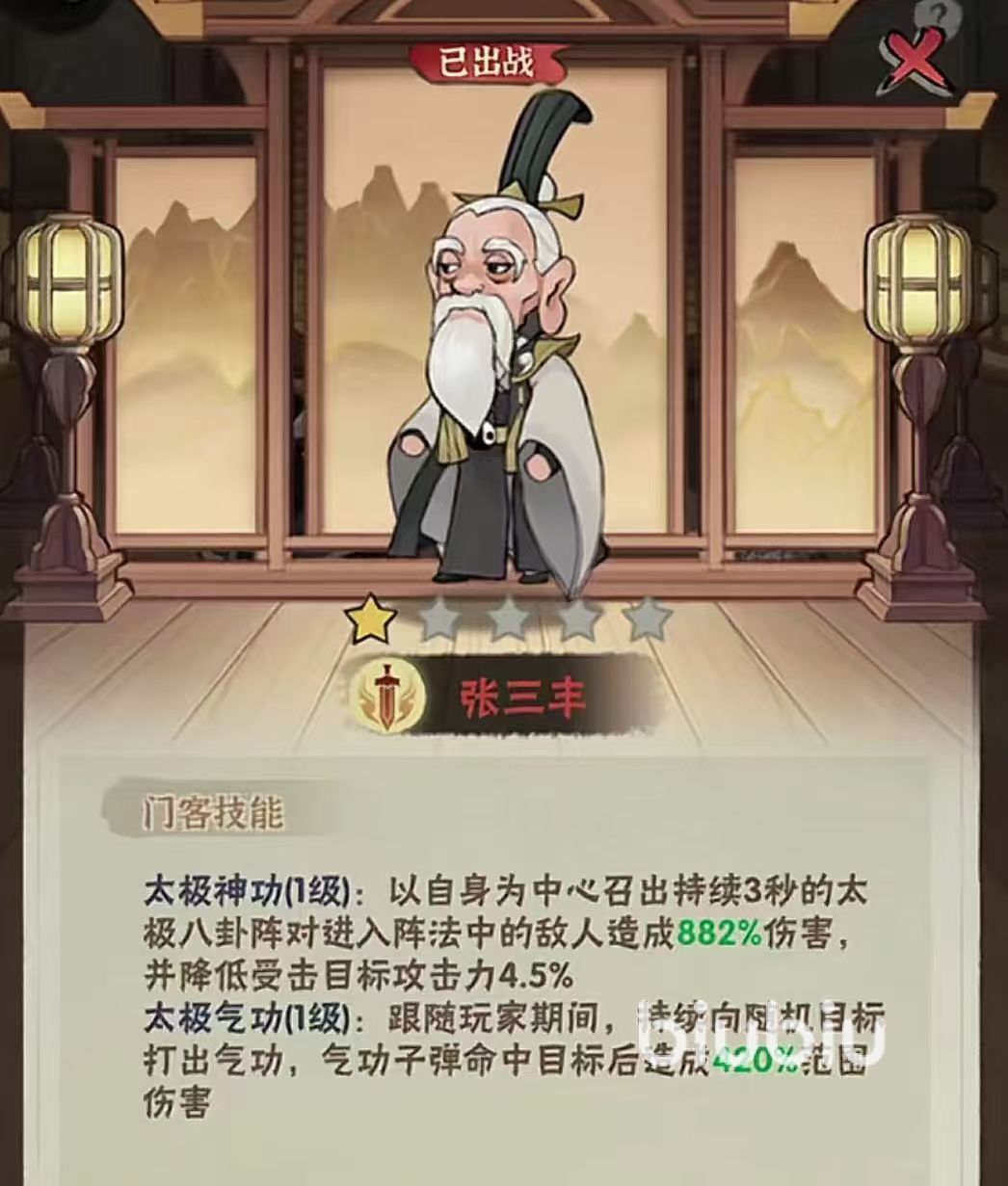接下来我们开始门客介绍,我们看到第一个门客杨思过,他给我们带来的技能介绍,也就是降低目标的一个伤害减免,也就是俗称的健康,应该在打boss方面表现应该还是非常突出的。