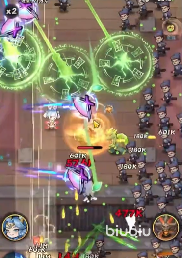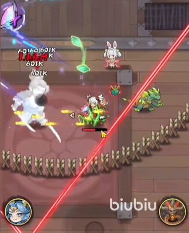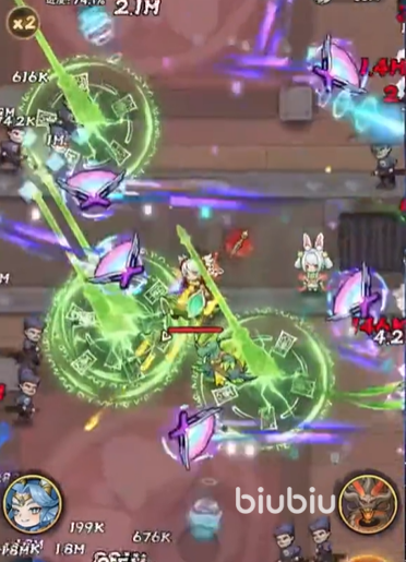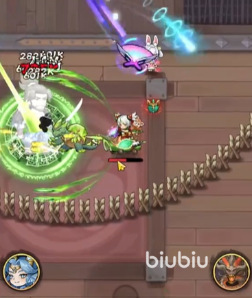 打完宫本之后,别高兴太早,这时会有一波绿色茎叶球的小怪冲出来。记住,这波兵来的时候,炸弹人也会凑热闹出现。如果你有“千里冰封”技能,这时候直接冻住炸弹人,省时省力。炸弹人被冰住后,炸弹引爆失败,基本上就算是帮你大大减轻了压力。