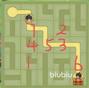按照上图的数字顺序去旋转砖块,就可以转出一条完整的道路,因为这一条线路,如果起手第一步转错了,后续就很难满足条件转正确。这个破阵寻宝的玩法非常的简单,一般情况下,玩家只需要研究个一分钟就能通关。