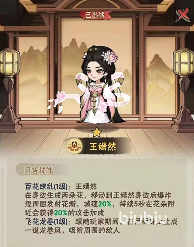 门客定位:门客任盈盈适合过图,她的技能“易伤妖王荒兽”值得考虑。