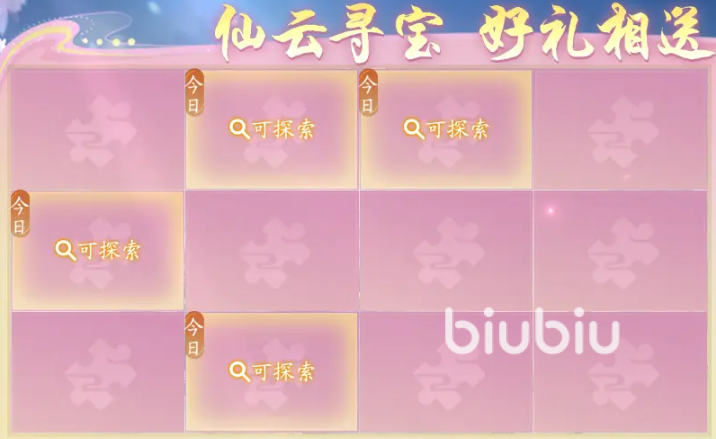 首先第一个活动是仙云探宝。咱们需要根据所给出的线索来进行探宝。玩家们需要先收集线索,然后根据线索来去寻找狐商。这样便可以解锁不同模块的拼图,在解锁拼图之后可以获得不同的奖励,每日指定时间还有限时宝箱的出现。